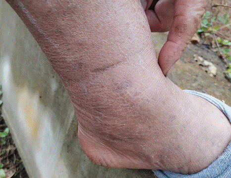 红火蚁叮蜇康复后留下的疤痕